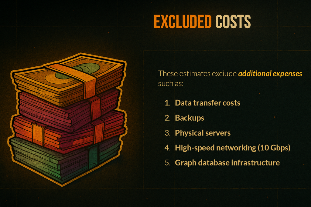 And here’s the critical part: this massive figure is an understatement. It excludes a long list of essential, high-margin services that cloud providers charge for, such as data transfer costs (the notorious egress fees), backups, high-speed networking, and the underlying costs of managed graph database software. The real bill would be significantly higher.