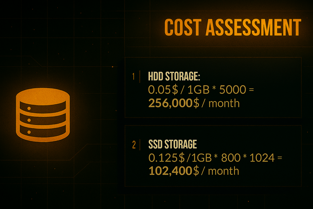 First, the storage. Keeping our data on cloud servers would cost over $256,000 per month for HDDs and another $102,000 per month for SSDs. That’s more than $358,000 every month, just for storage.