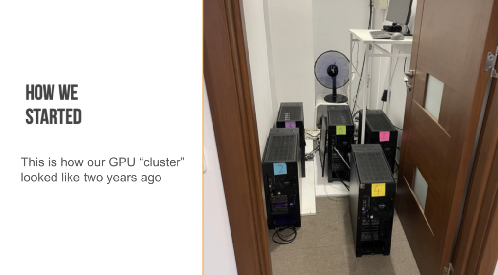 When it came to our most specialized need—GPUs—we took it a step further. Faced with scarcity and exorbitant rental costs, we chose to build our own in-house GPU infrastructure. We sourced the components and assembled the rigs ourselves. It wasn’t easy; we battled faulty CPUs and unexpected software errors. However, this difficult choice provided us with a critical capability at a fraction of the cost.